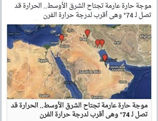 في مصر، ضربت أغلب محافظات البلاد، موجة حارة، حيث سجل ارتفاع حاد في درجة الحرارة، لاسيما في محافظة المنيا، ما أجبر غالبية المصريين على التزام المنازل