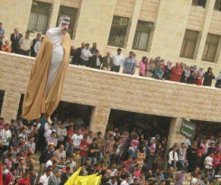 أقدمت كتلة الشهيد ياسر عرفات الذراع الطلابي لحركة فتح في جامعة فلسطين التقنية "خضوري" بطولكرم على تمثيل عملية إعدام لأمير قطر الشيخ حمد بن خليفة