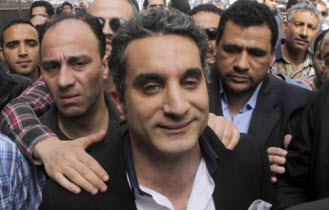 يمثل الأحد الإعلامي المصري باسم يوسف أمام النيابة العامة المصرية للمرة الأولي منذ ظهوره إعلاميا بعد ثورة 25 يناير، وذلك بعدما قرر تسليم نفسه بعد يوم واحد من صدور أمر بضبطه وإحضاره بشكل مفاجئ من النيابة.