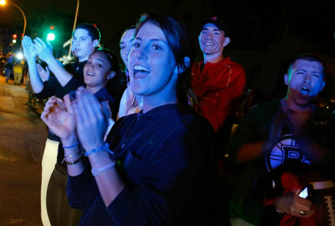 وتجمع حشد من المواطنين قرب الموقع الذي اعتقل فيه تسارنايف وهللوا بعد أن سقط في قبضة قوات الأمن.